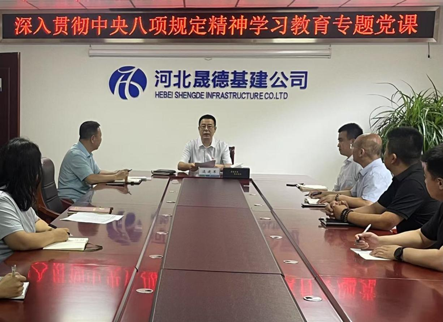 2025年7月10,按照公司黨委統(tǒng)一部署,結(jié)合深入開展的中央八項(xiàng)規(guī)定精神學(xué)習(xí)教育,晟德基建公司黨委副書記、副董事長、總經(jīng)理遇建軍以《堅(jiān)守初心擔(dān)使命,正風(fēng)肅紀(jì)樹標(biāo)桿,以中央八項(xiàng)規(guī)定精神為引領(lǐng)譜寫公司發(fā)展新篇章》為題,為所在支部上一堂廉政專題黨課。遇建軍指出,中央八項(xiàng)規(guī)定精神體現(xiàn)了黨從嚴(yán)治黨的決心和與人民群眾保持血肉聯(lián)系的態(tài)度。從八個方面對改進(jìn)作風(fēng)提出具體要求,以小切口打開大局面,為黨和國家事業(yè)發(fā)展提