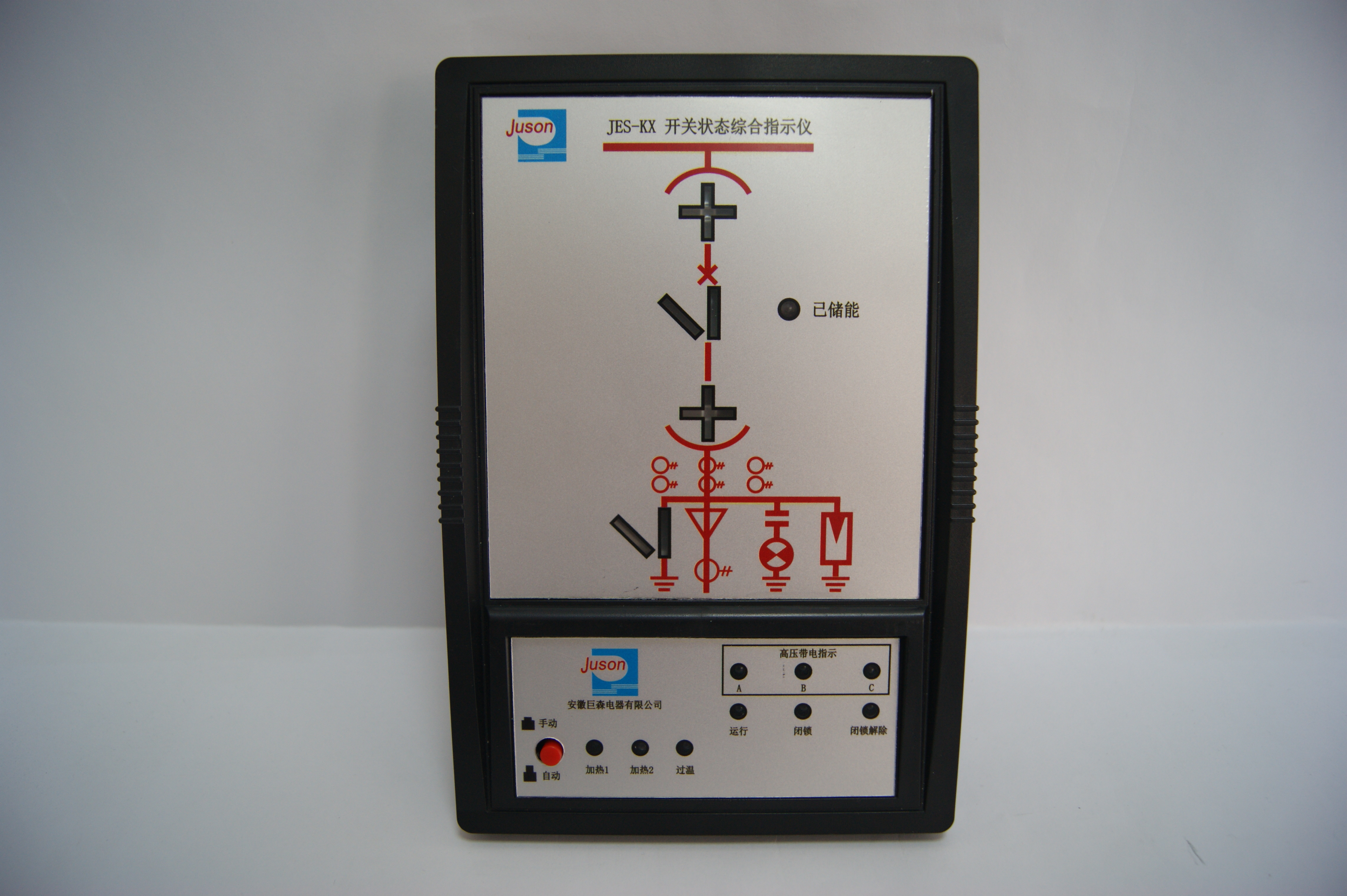 JES-KX 開關狀態指示儀是根據當前中壓系統開關柜技術發展 而開發設計的一種新型的多功能、智能化模擬動態指示裝置。它集 一次回路模擬圖、開關狀態、斷路器位置、接地閘刀位置、彈簧儲 能狀態、高壓帶電指示、高壓帶電閉鎖以及自動(手動)加熱除濕 控制、過溫排風等多功能于一體。該產品以一體化布局配套裝備于 開關柜,適用于中置柜、手車柜、固定柜、環網柜等多種開關柜。 將簡化開關柜的面板結構設計,美化開關柜的面板布局,完善開關 狀態的指示功能和安全性能。